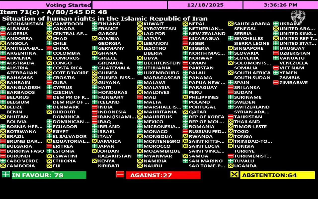 شمار آرای موافق این قطعنامه با ۷۸ رأی، همچون سالهای گذشته، کمتر از مجموع آرای مخالف و ممتنع بود.