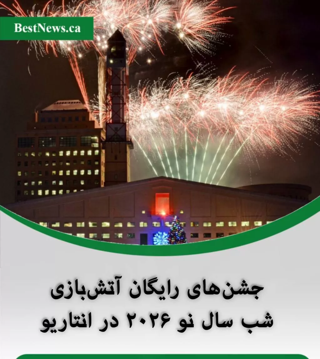 جشن‌های رایگان آتش‌بازی شب سال نو ۲۰۲۶ در انتاریو 📍🕗💸